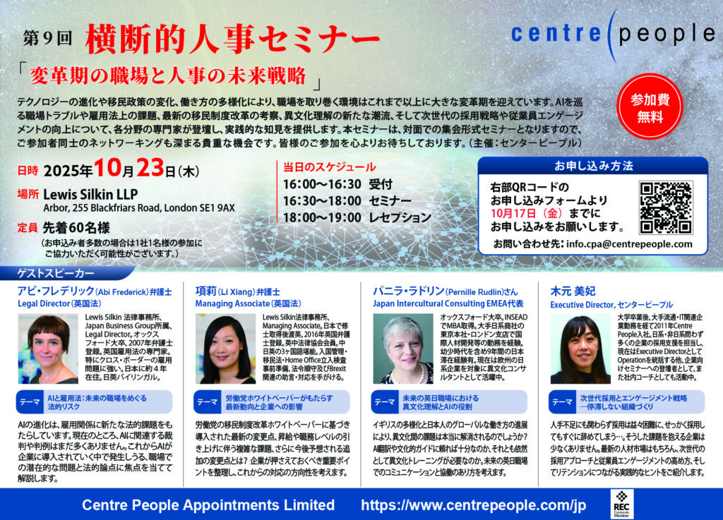 This post is also available in: 英語 2025年10月23日にロンドンで開催される第9回 横断的人事セミナーにて、ラドリン・コンサルティングの代表取締役とジャパン・インターカルチュラル・コ…