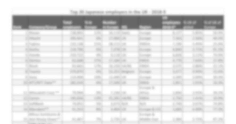 Top 30 Japanese company groupings in the Europe, Middle East and Africa region – ranked by number of employees within the corporate group.